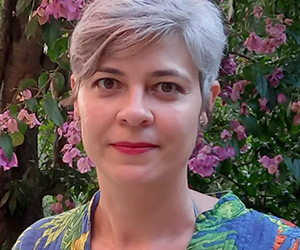 Maringaense, nascida em 1975, é autora, entre outros títulos, da narrativa Os jornais de Geraldine (Arte & Letra, 2019) e dos poemas reunidos em Céu a Pino (Patuá, 2022). Graduada em comunicação social na UEL, atuou como jornalista por duas décadas, em mídia impressa, agências de comunicação e comunicação pública. É mestra em estudos de linguagens pela UTFPR e doutoranda em materialidades da literatura na Universidade de Coimbra. Integra o núcleo gestor do Era uma vez, coletivo que atua na formação de leitores e na difusão da literatura infantil e juvenil produzida em Curitiba.